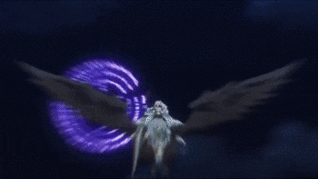 Considered the most extreme of his Noble Phantasms, it emits a magical sound similar in nature to the roar of a dragon, the cry of a giant bird, and the neighing of a divine horse, slamming targets within range with the force of an explosion of sound.